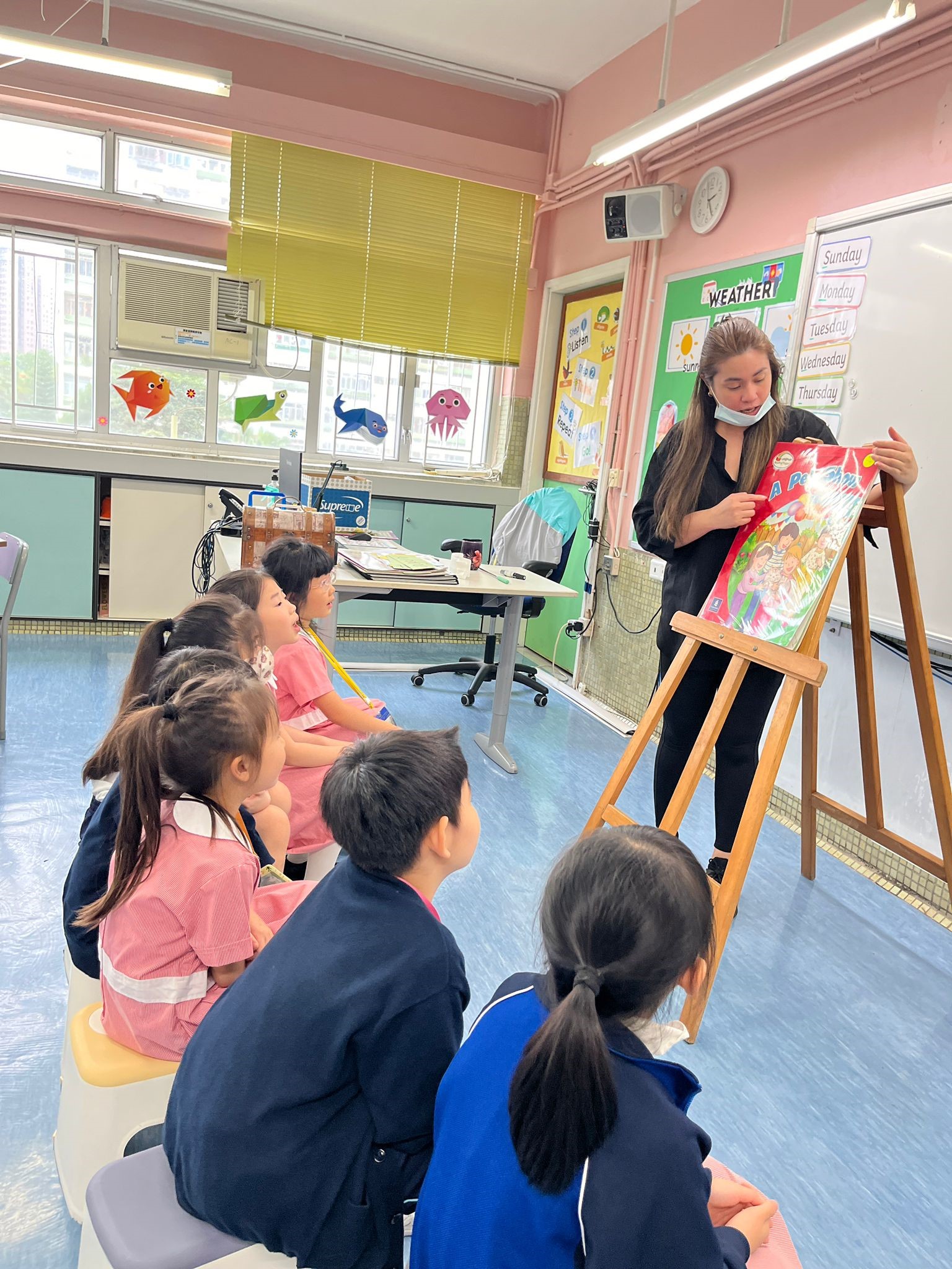 Amusing big books are read with Miss Teresa (left) and Miss Anna (right)