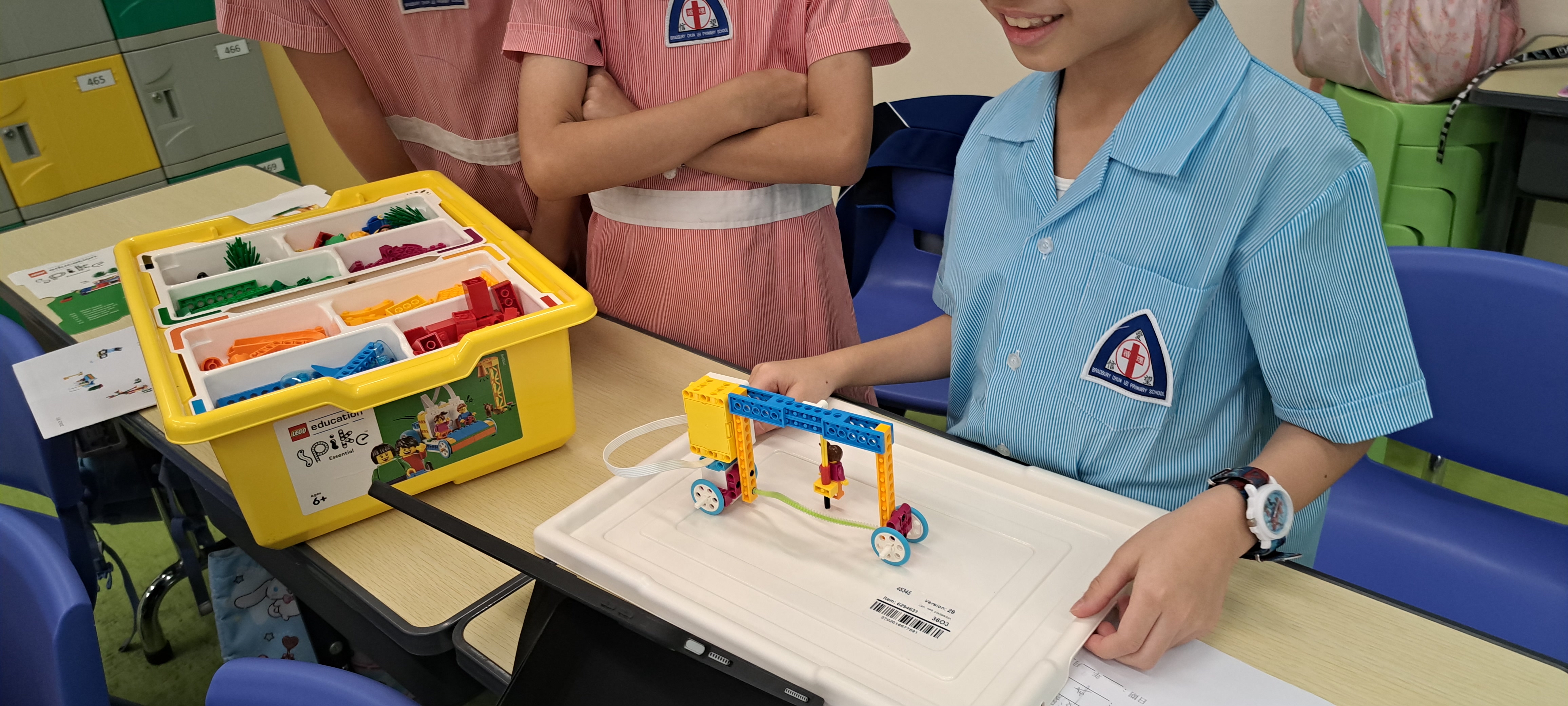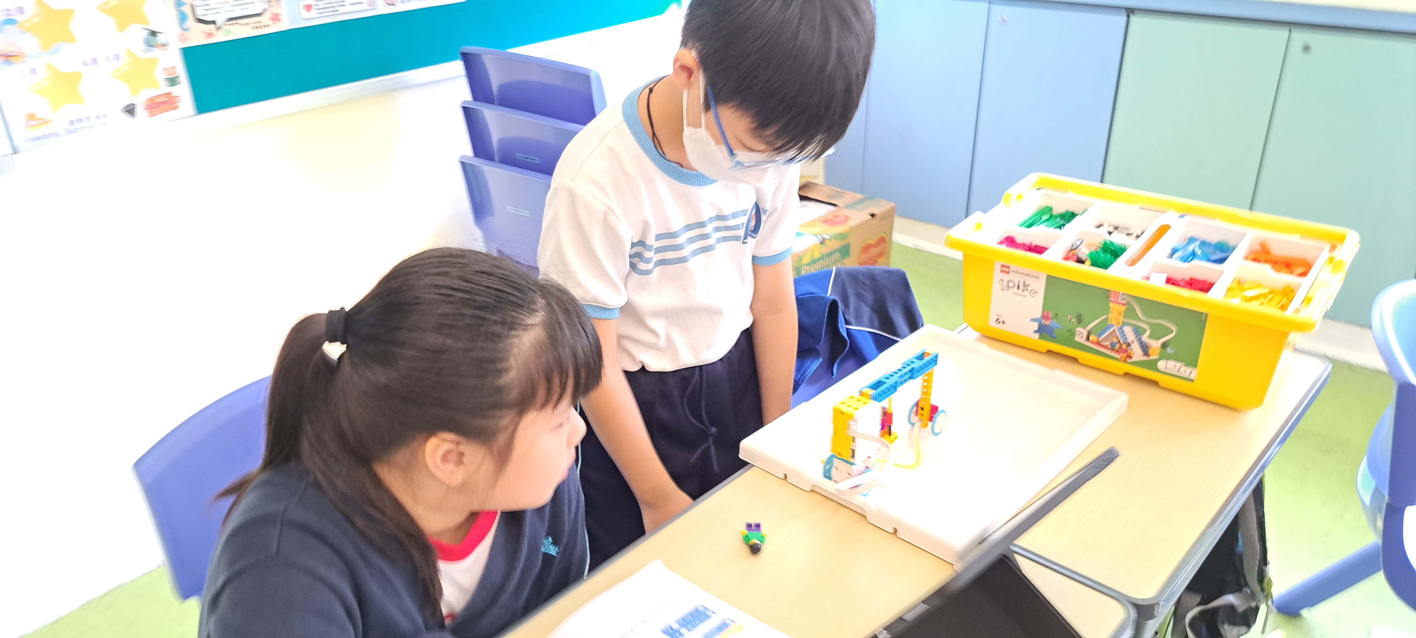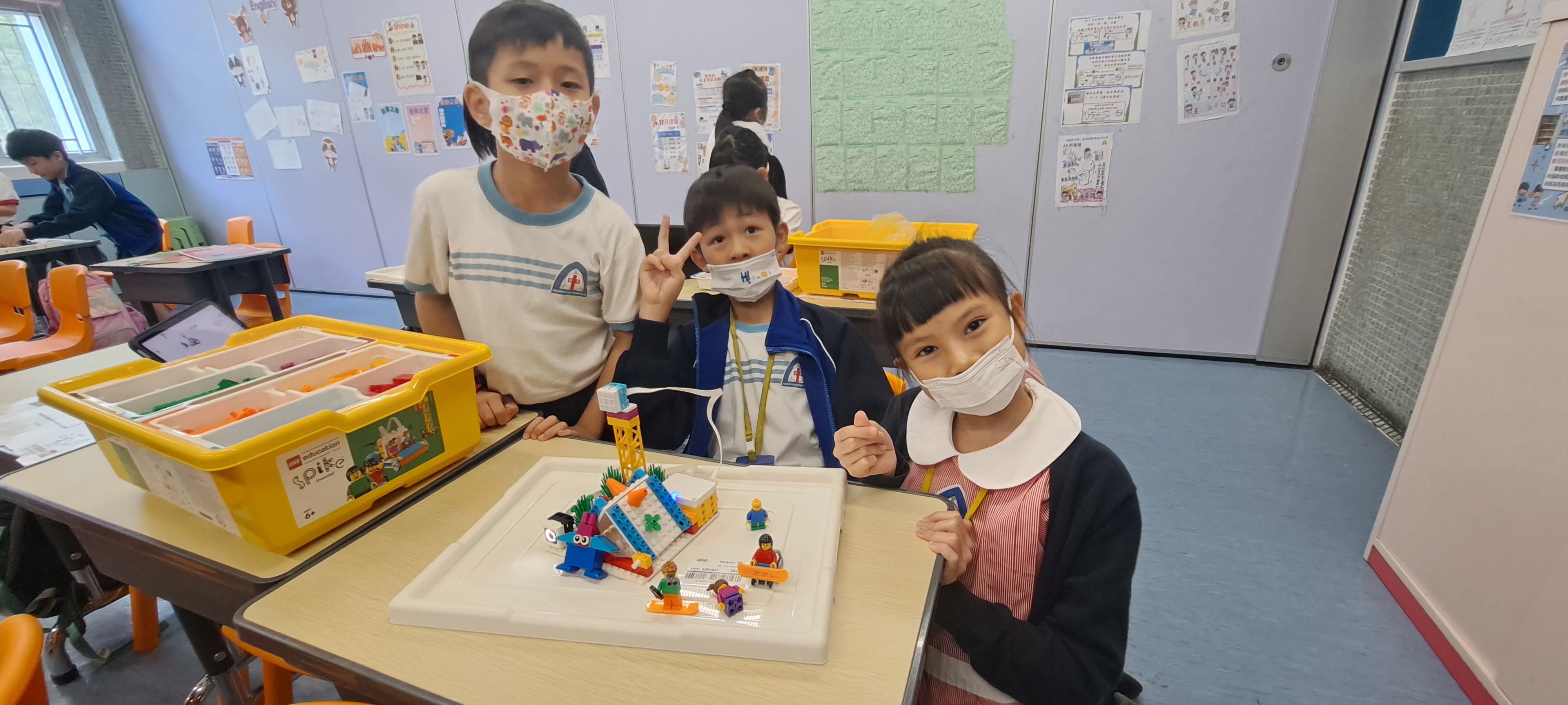 初小的同學先利用lego然後利用編程控制不同的感測器及發聲裝置,製作一個又一個有趣的場景